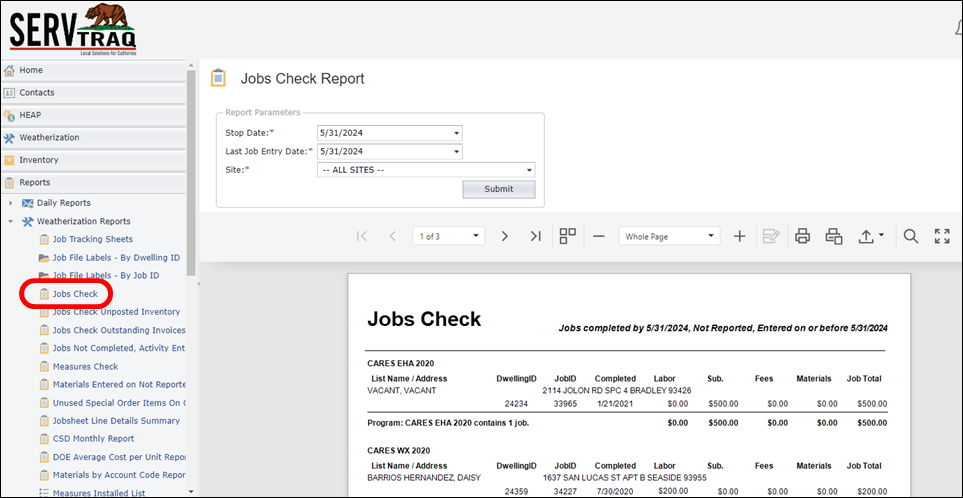 Step 2: Go to Weatherization > Weatherization Admin > Job Reporting